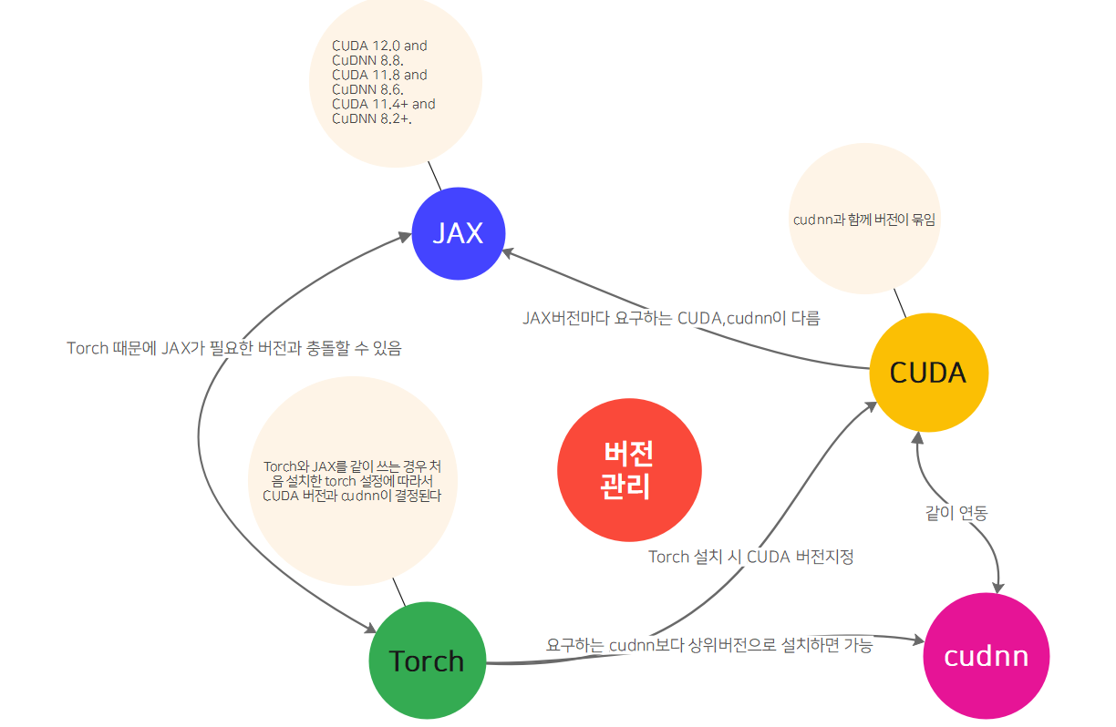 여기서 내가 어려움을 겪었던 것은 Torch와 JAX, 그리고 CUDA & cudnn 버전이 잘 안 맞으면서 발생한 문제이다.