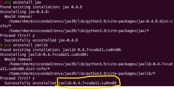 그래서 일단 JAX/jaxlib을 uninstall하면