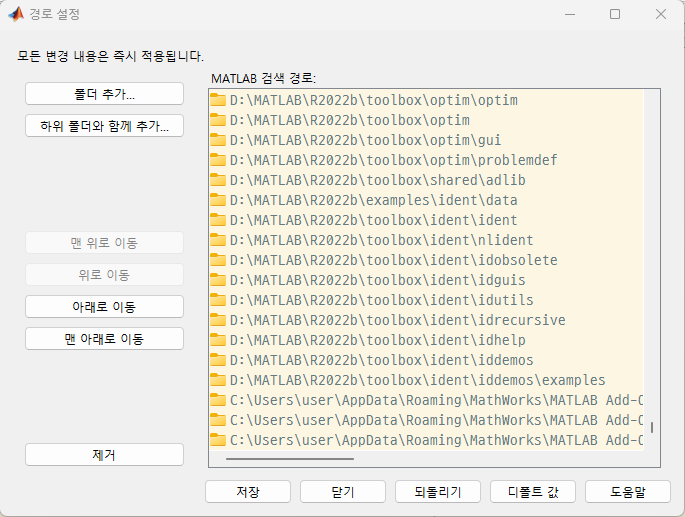 MATLAB을 지웠다 켜도 경로를 계속 쓸 수 있다는 점이다.