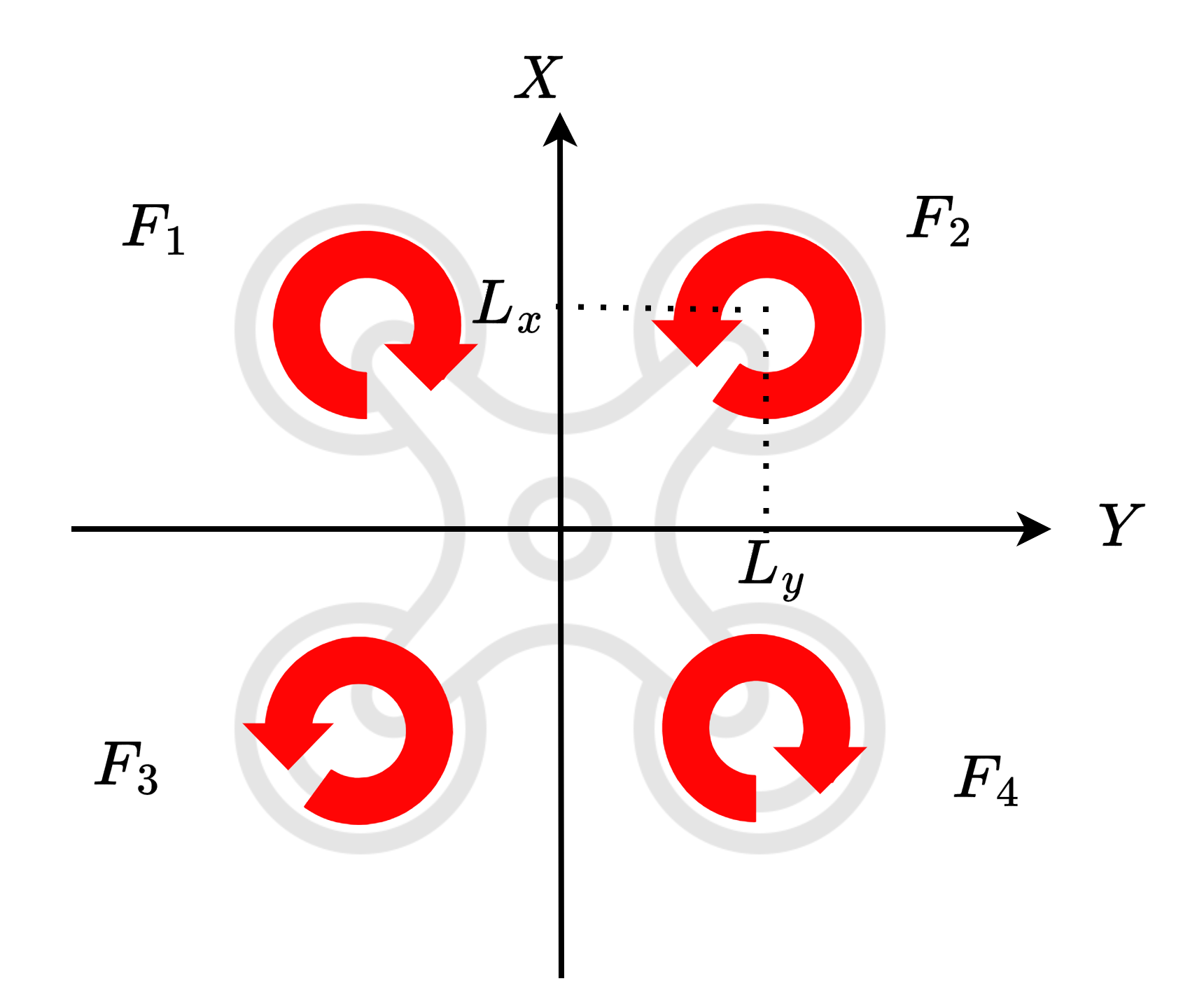 자세각을 바꾸는 방법은 로터 각각의 추력을 제어해서 모멘트를 만들고 이 모멘트로 각속도를 변화시켜 최종적으로는 각도를 변화시켜야 한다.
