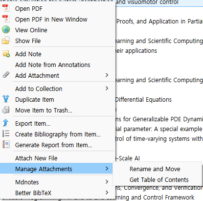 이렇게 한 다음에 rename attachement 기능을 이용해서 이미 등록해놓은 참고문헌들을 옮기면 된다.