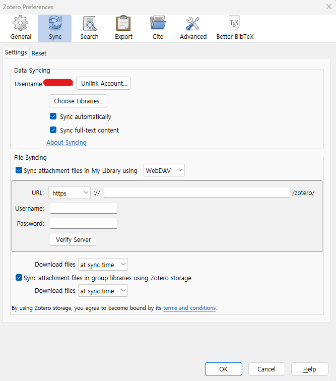 그래서 zotero에서는 Sync(syncronization)을 제공한다. (https://www.zotero.org/support/sync)