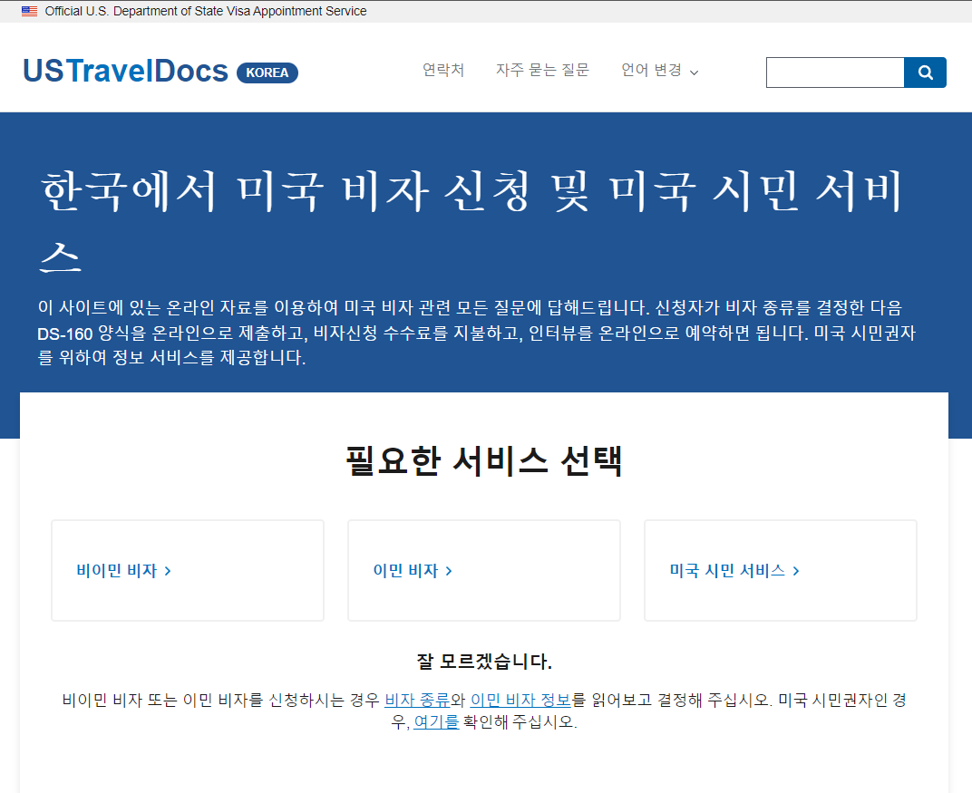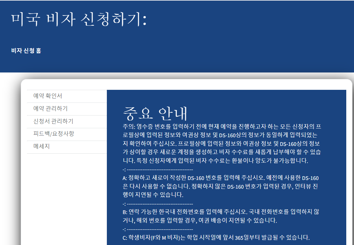 비자 인터뷰를 예약해야하는데 옛날과 조금 달라진 것 같아서 헤맸다.