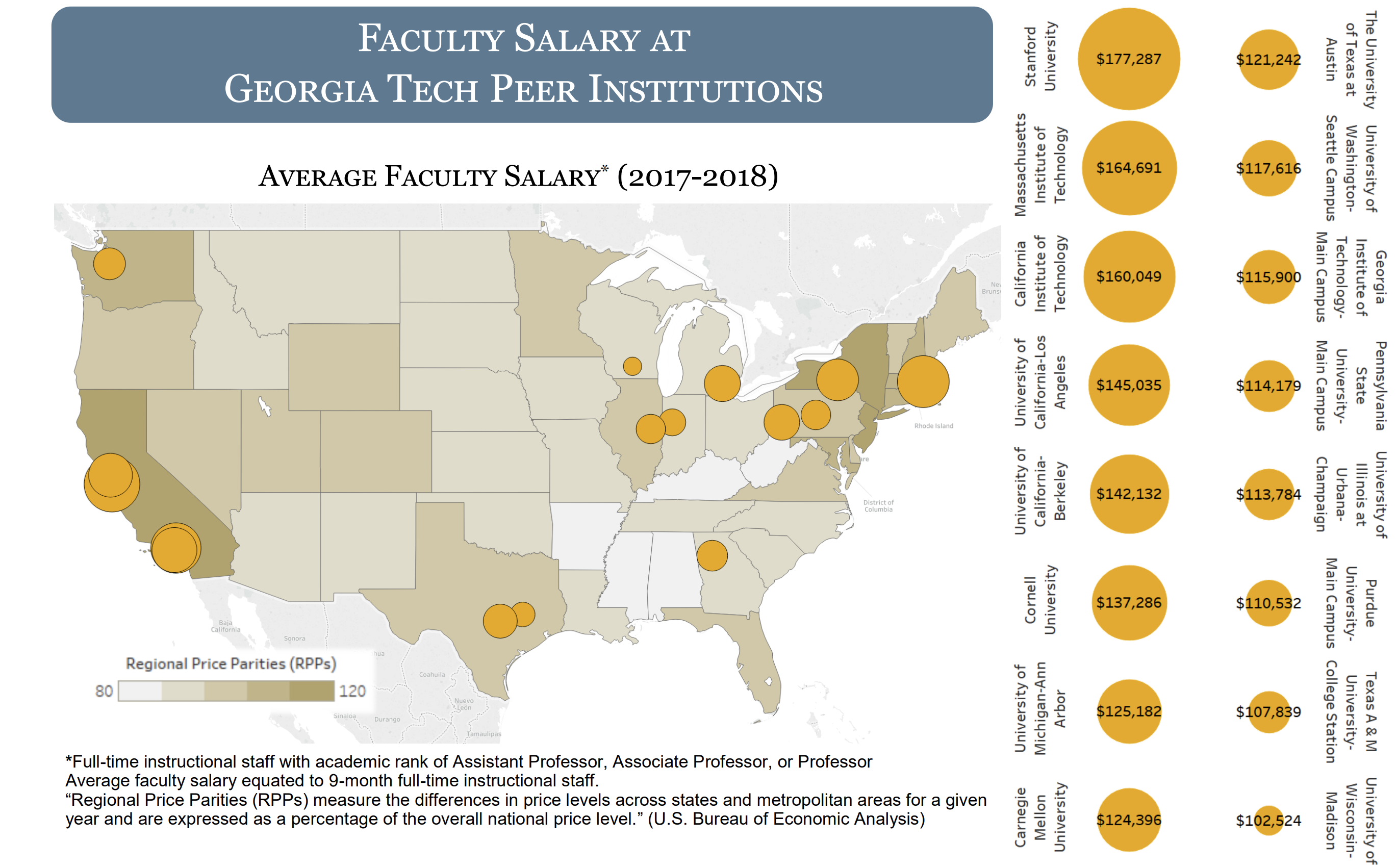 아래는 지역 물가를 고려한 salary이다. 물가를 고려하더라도 stanford, MIT가 높게 책정된다. 하지만 이 데이터는 2017-2018년 데이터라서 정확하지는 않다.