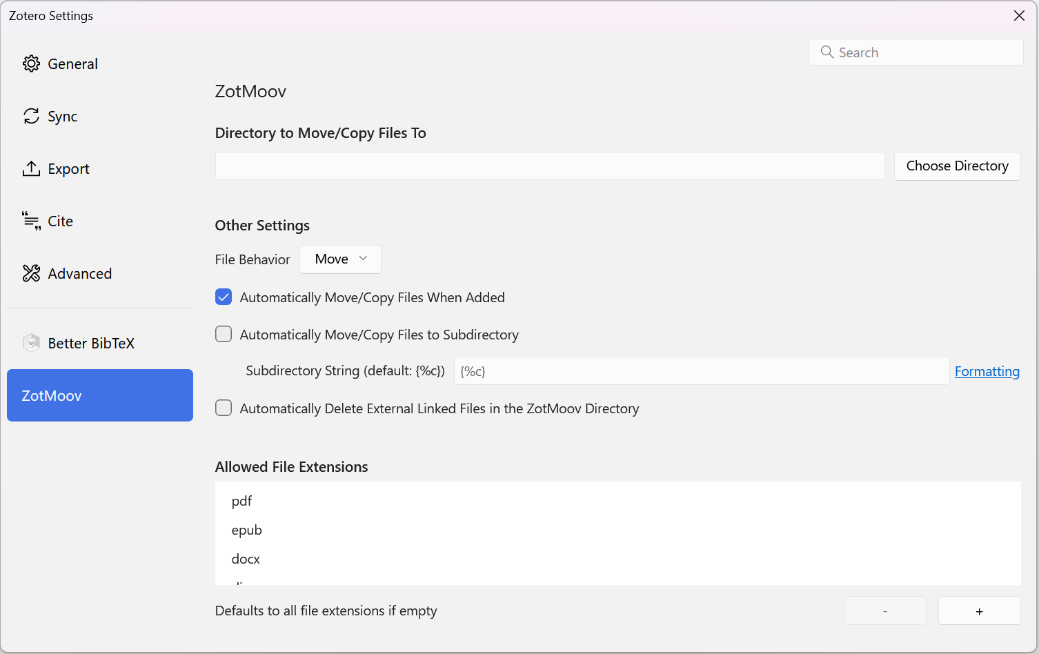 이 글에서는 ZotMoov만 다룬다. zotfile과 거의 동일한 기능을 제공하는 것처럼 보였기 때문이다.