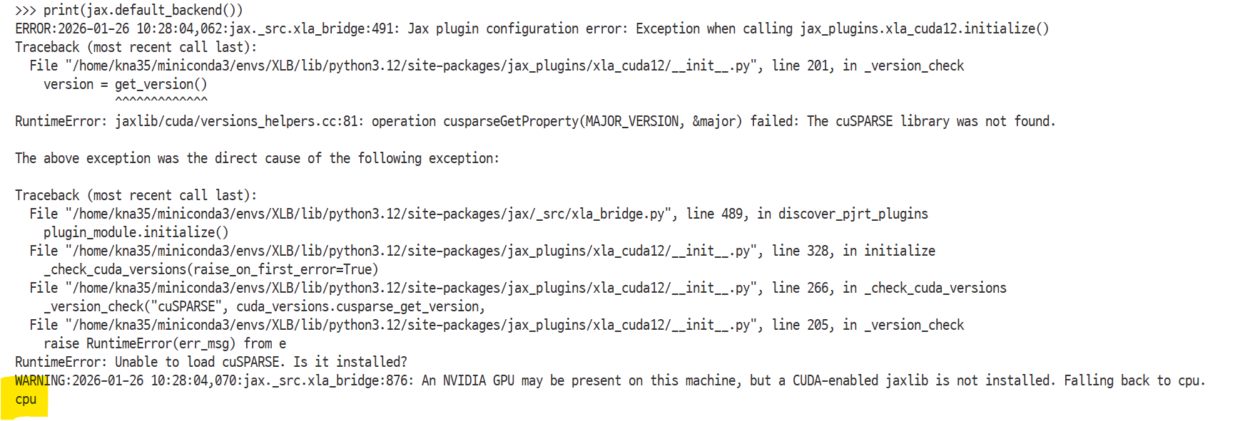 >> print( jax.default_backend() )