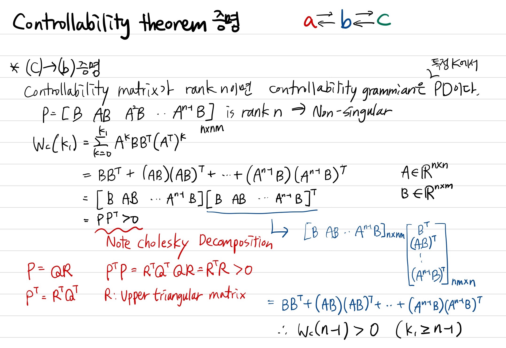 여기서 $W_{c}(k_{1})$은 cholesky decomposition이 가능함을 보였습니다. cholesky decomposition이 가능하다는 것은 그 matrix가 positive definite matrix라고 볼 수 있습니다.