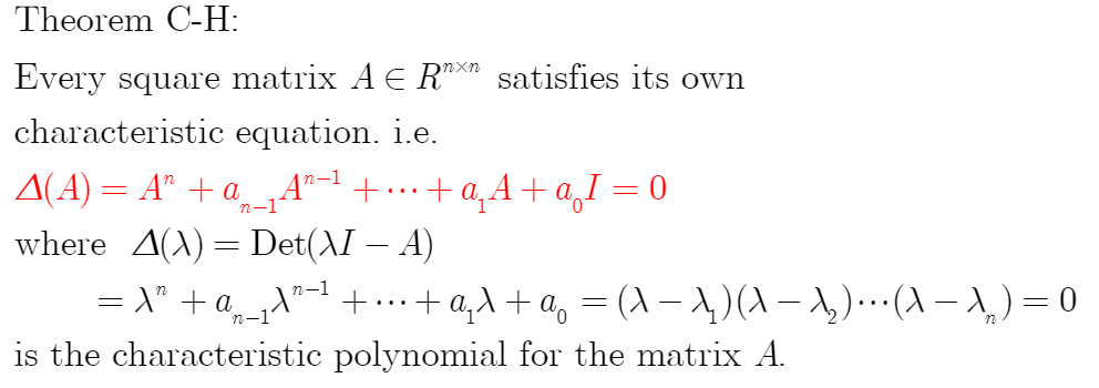 C-H Theorem은 뒤의 controllability theorem에서도 나옵니다.