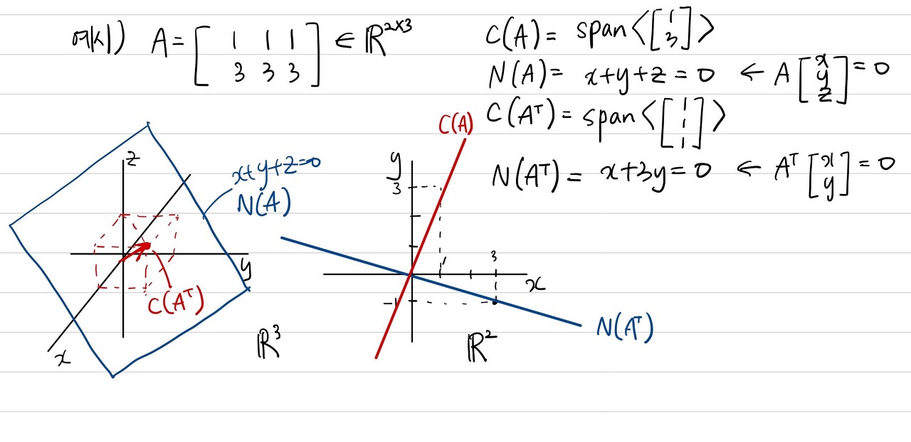 $\text{4. Left null space : }N(A^{T}) \rightarrow \text{ a spanning space of vectors satisfying }A^{T}y=0$
