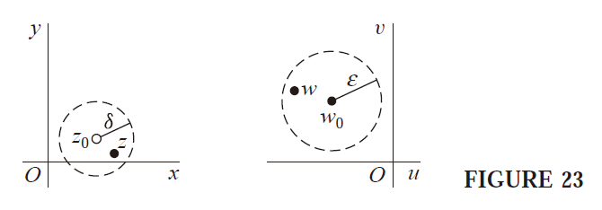$\text{Suppose that} f(z)=u(x,y)+iv(x,y) (z=x+iy)\text{ and }z_{0}=x_{0}+iy_{0}, w_{0}=u_{0}+iv_{0}$