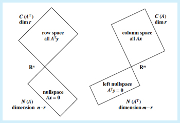 Column space, Row space, Null space, Left null space를 orthogonal 관계로 설명할 수 있습니다.