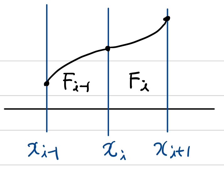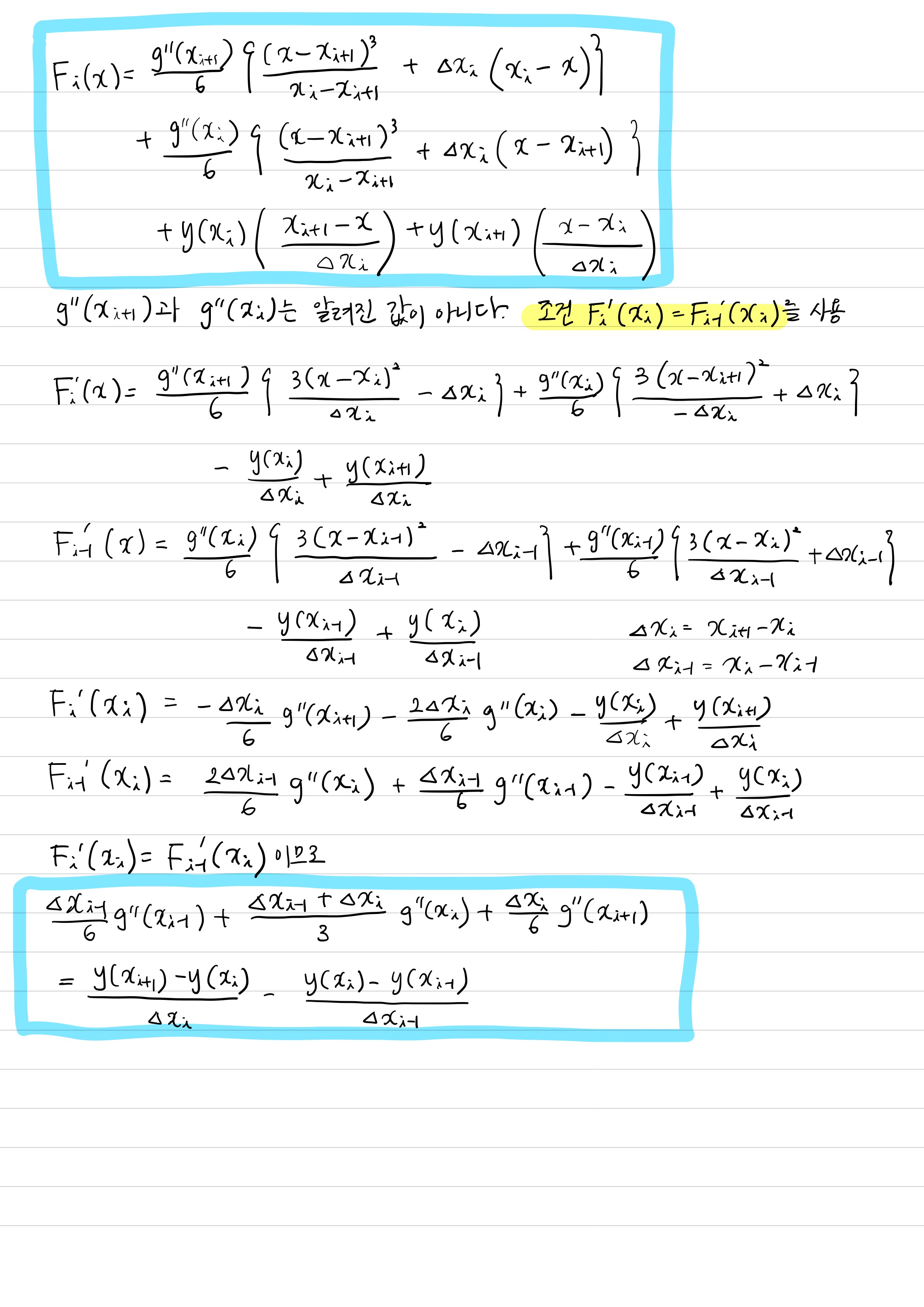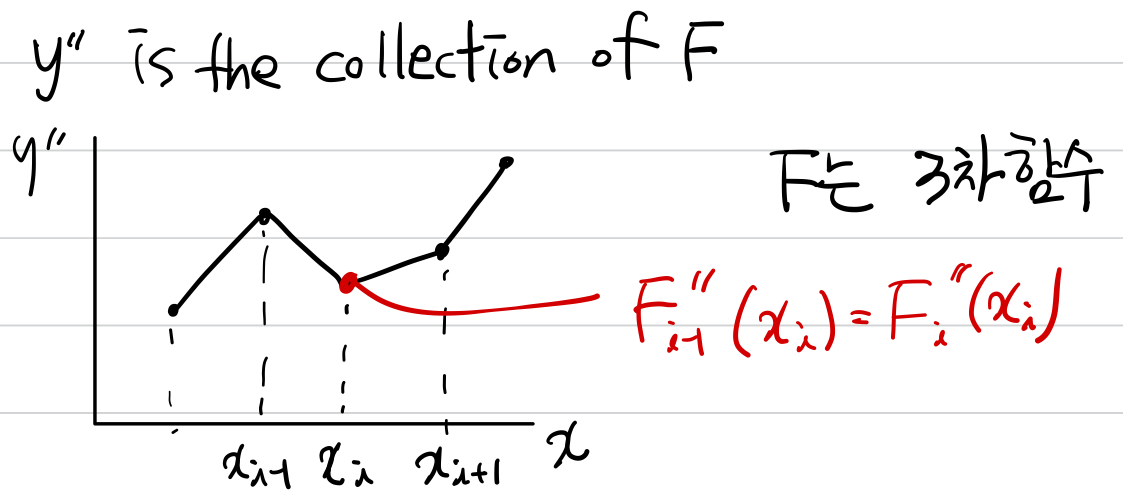(4)번 식에 따르면 $F_{i-1}^{''}(x_{i})=F_{i}^{''}(x_{i})$입니다.