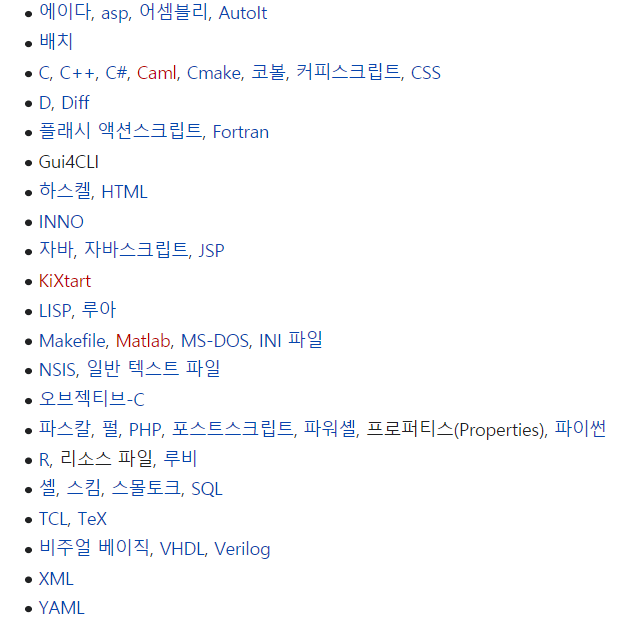 위 그림이 notepad++가 지원하는 언어들인데 확실히 atom보다 많더라.